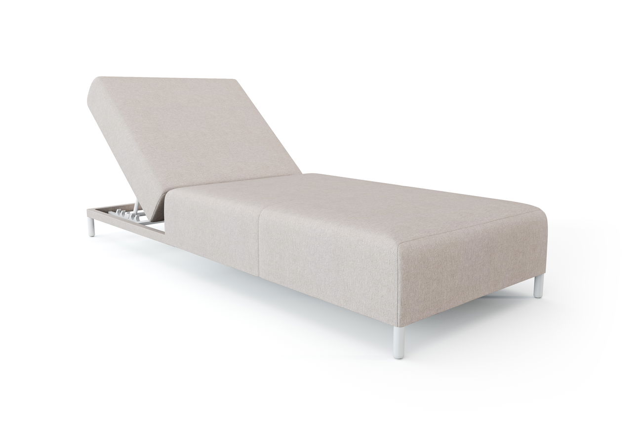 La estructura de aluminio blanco mate confiere a esta tumbona una elegancia atemporal, mientras que la tapicería en un noble beige cuarzo forma un complemento armonioso. Gracias a sus propiedades impermeables, esta obra maestra es perfecta para los días soleados y siempre ofrece una experiencia de descanso agradable, ya que el material se seca rápidamente.