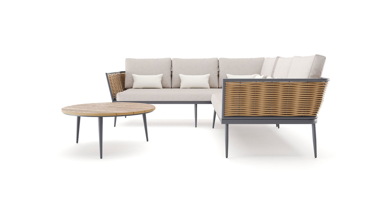 Entspannen Sie stilvoll – Die Astra Lounge verbindet modernes Design mit außergewöhnlichem Komfort und ist die perfekte Ergänzung für Garten, Terrasse oder Poolbereich. Ihre elegante L-Form lädt dazu ein, draußen luxuriös zu entspannen – ob allein oder in geselliger Runde.